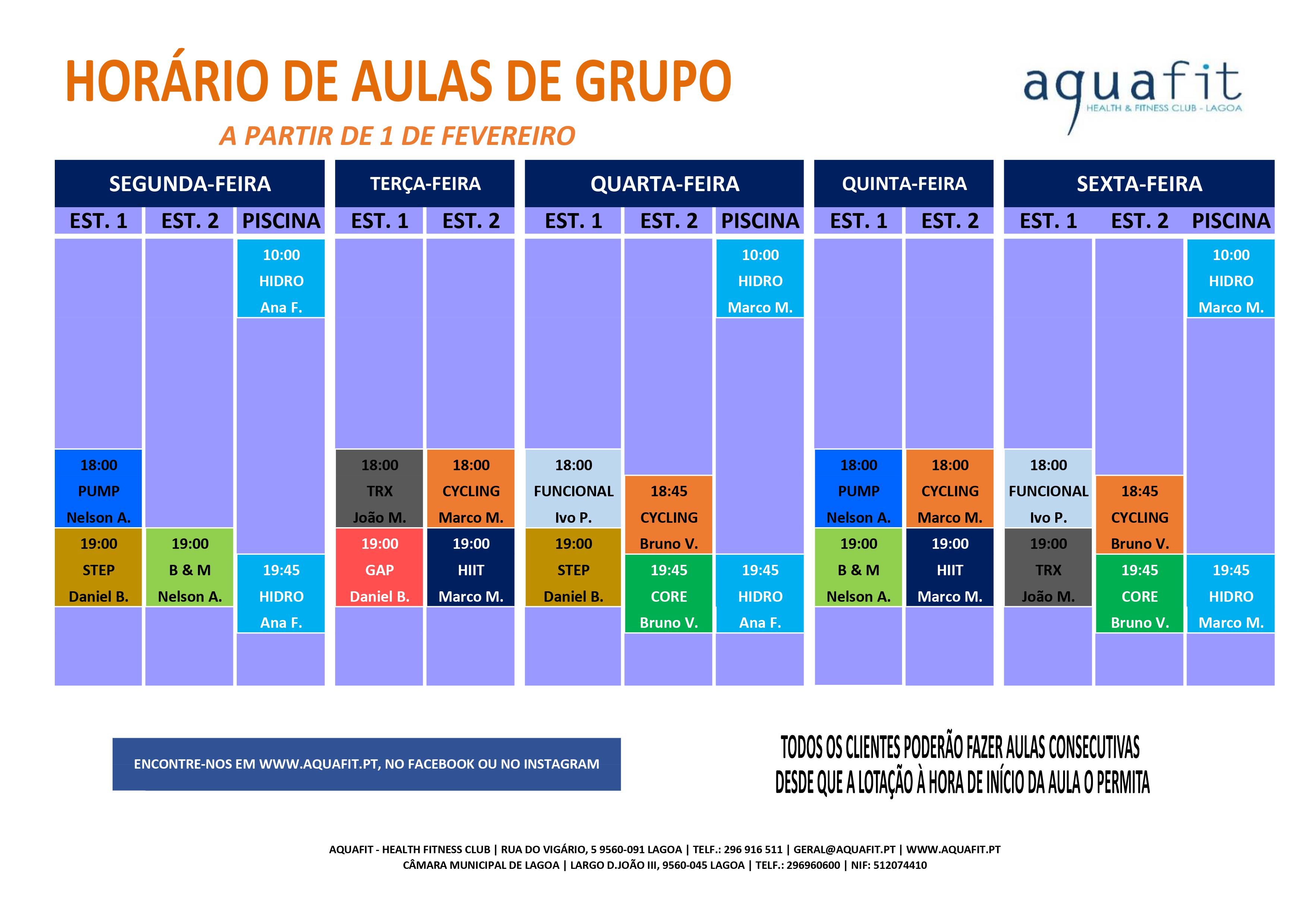 HORÁRIO AULAS DE GRUPO - A PARTIR DE 1 FEVEREIRO